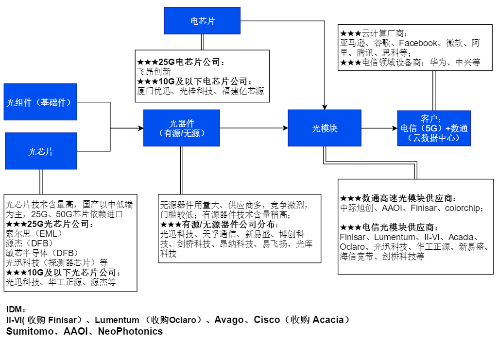 光模塊產(chǎn)業(yè)鏈公司分布