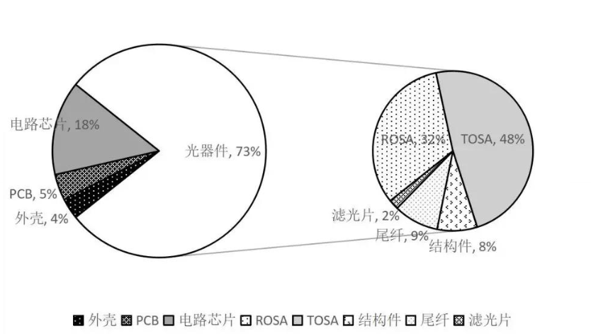 光模塊成本構(gòu)成圖(數(shù)據(jù)來源:紅塔證券)