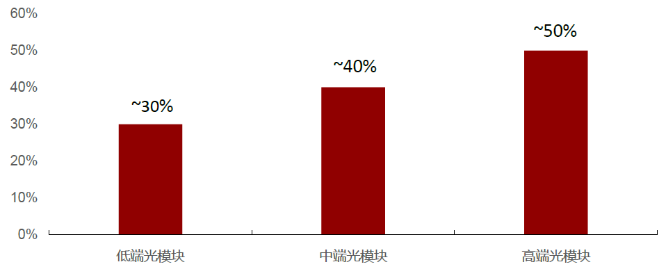 光芯片在不同級(jí)別光模塊中的高成本占比